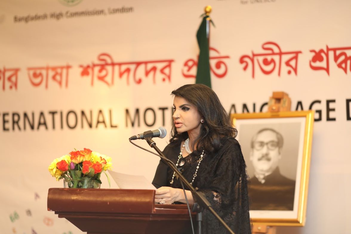 ১৯৫২ সালের অমর ভাষা শহিদ এবং বঙ্গবন্ধু শেখ মুজিবুর রহমানের প্রতি গভীর শ্রদ্ধা নিবেদন করে হাইকমিশনার উল্লেখ করেন বিবিসি’র তথ্য অনুযায়ী বঙ্গবন্ধুই প্রথম বাঙালি যিনি জাতিসংঘের সাধারণ পরিষদে বাংলা ভাষায় বক্তৃতা দিয়ে বাংলাকে আন্তর্জাতিক পর্যায়ে নিয়ে গেছেন। এরই ধারাবাহিকতায় তাঁরই সুযোগ্য কন্যা প্রধানমন্ত্রী শেখ হাসিনা বাংলা ভাষা শহীদ দিবসকে আন্তর্জাতিক মাতৃভাষা দিবস হিসেবে আন্তর্জাতিকীকরণের পাশাপাশি বাংলাকে জাতিসংঘের দাপ্তরিক ভাষা হিসেবে স্বীকৃতি আদায়ের অব্যাহত প্রচেষ্টা চালিয়ে যাচ্ছেন। হাইকমিশনার প্রধানমন্ত্রী শেখ হাসিনার বিশেষ উদ্যোগে ঢাকায় প্রতিষ্ঠিত আন্তর্জাতিক মাতৃভাষা ইনস্টিটিউটে ৭ হাজারেরও বেশি মাতৃভাষা সংরক্ষণে সহায়তা করার জন্য ব্রিটিশ কাউন্সিলের প্রতি আহ্বান জানান।