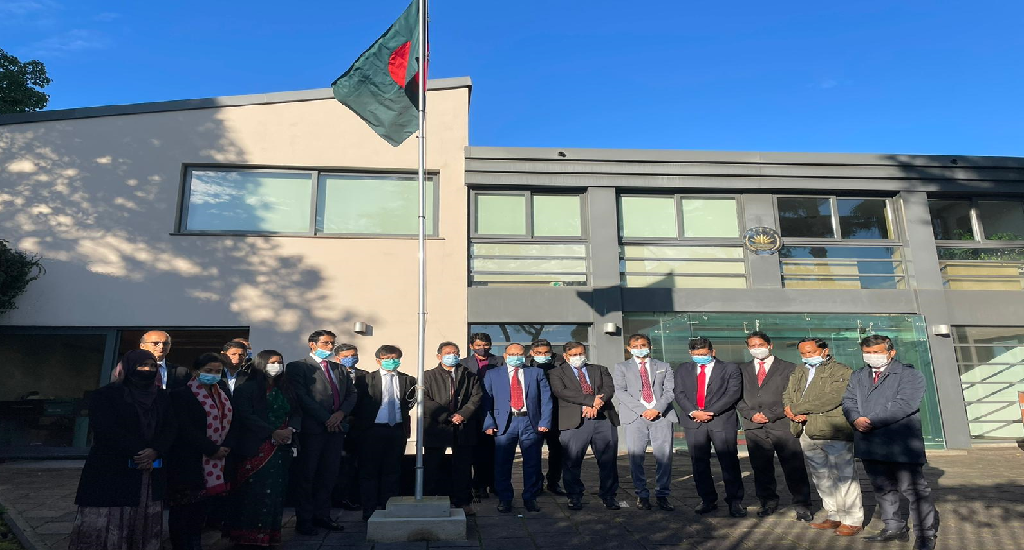 ১৬ ডিসেম্বর ২০২০ সকাল ৯ টা ৩০ টায় দূতাবাসে আয়োজিত অনুষ্ঠানের প্রথম পর্বে জাতীয় সঙ্গীতের সাথে জাতীয় পতাকা উত্তোলন, বঙ্গবন্ধু শেখ মুজিবুর রহমান-এর প্রতিকৃতিতে পুস্পস্তবক অর্পন এবং জাতির পিতাসহ মুক্তিযুদ্ধে সকল শহিদদের প্রতি শ্রদ্ধা নিবেদন করে এক মিনিট নিরবতা পালন করা হয়।