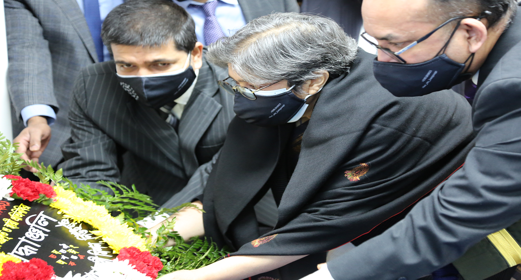 ভাষণের শুরুতেই তিনি বাহান্নের ভাষাশহীদ এবং ভাষা আন্দোলনের পথিকৃৎ জাতির পিতা বঙ্গবন্ধু শেখ মুজিবুর রহমানকে গভীর শ্রদ্ধার সাথে স্মরণ করেন।