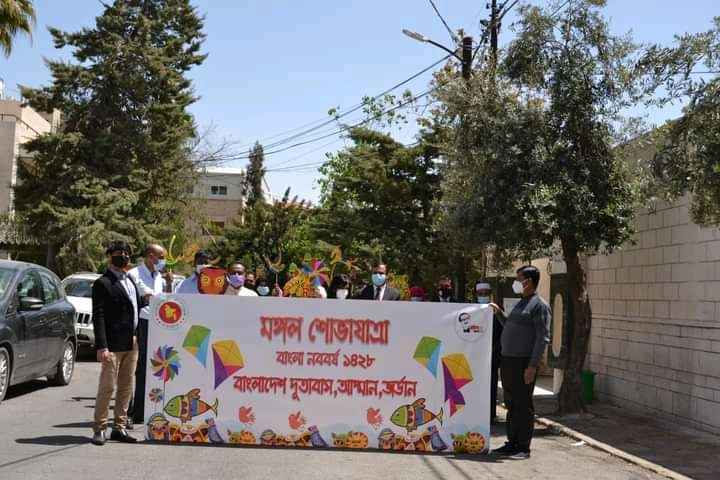 জর্ডানস্থ বাংলাদেশ দূতাবাস বাংলা নববর্ষ ১৪২৮ উপলক্ষ্যে মঙ্গল শোভাযাত্রা ও বাংলাদেশি বিশেষ খাবারের আয়োজন করেছে।