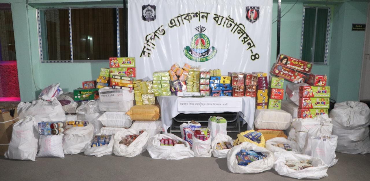 নিজস্ব প্রতিবেদক: পবিত্র শবে বরাত উপলক্ষ করে দেশে নাশকতা সৃষ্টিসহ আইন-শৃঙ্খলা পরিস্থিতির অবনতি ঘটাতে কয়েকজন ব্যক্তি সাভার আশুলিয়ার হলি ক্রিসেন্ট এলাকার একটি দোকানে বিক্রয় নিষিদ্ধ বিস্ফোরক জাতীয় অবৈধ আতশবাজি ও পটকা মজুদ করে বলে জানান র্যাব।
