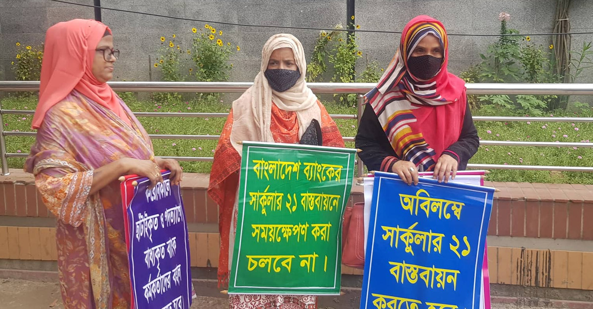 তারা আরও জানান, বেআইনিভাবে পদত্যাগে বাধ্য ও ছাঁটাই করা কর্মকর্তাদের বহালের জন্য বাংলাদেশ ব্যাংক তদন্তপূর্বক প্রাপ্ত ফলাফলের ভিত্তিতে সার্কুলার (বিআরপিডি সার্কুলার নং- ২১ তারিখ ১৬-০৯-২০২১) জারি করেছে। নির্দেশনা অনুযায়ী আবেদন করার পরও অনেক ব্যাংক তাদের কর্মীদের বহাল করছে না।