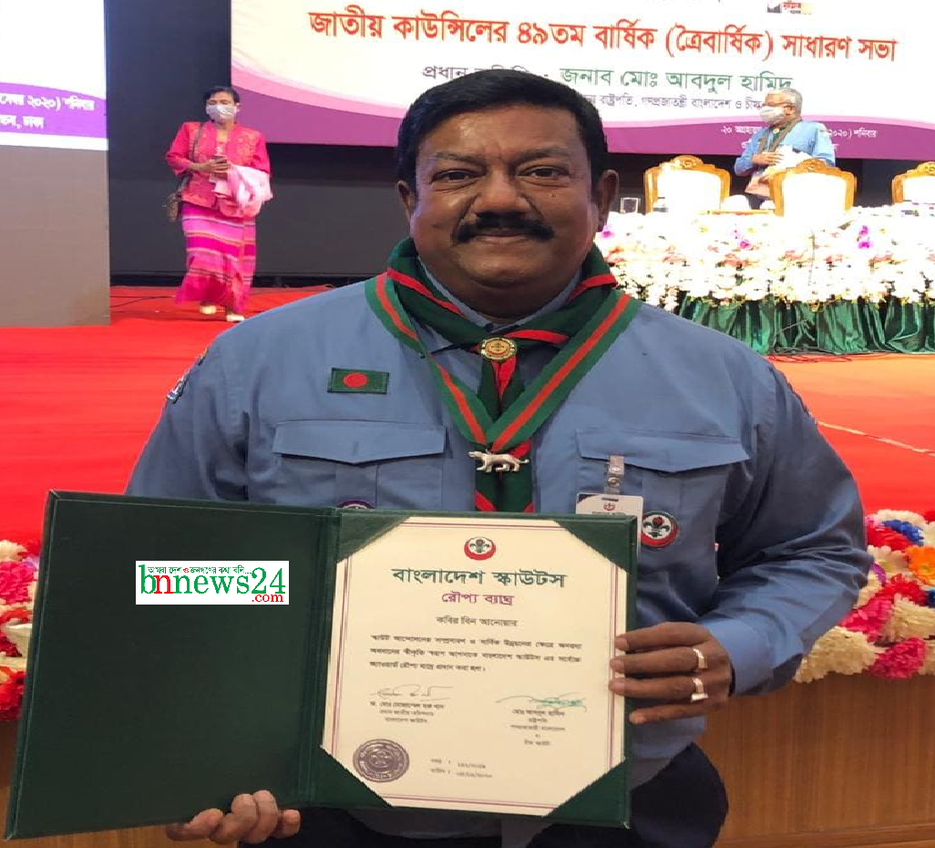 স্টাফ রিপোর্টার : স্কাউটস আন্দোলনের উন্নয়ন ও সম্প্রসারণে অনন্য অবদানের জন্য বাংলাদেশ স্কাউটস-এর সর্বোচ্চ সম্মাননা “রৌপ্য ব্যাঘ্র” পদকে ভূষিত হয়েছেন বাংলাদেশ স্কাউটসের উন্নয়ন বিষয়ক জাতীয় কমিটির সভাপতি ও পানি সম্পদ মন্ত্রণালয়ের সিনিয়র সচিব কবির বিন আনোয়ার।