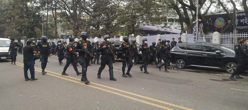 স্টাফ রিপোর্টার : আন্তর্জাতিক মাতৃভাষা দিবস ও অমর একুশে ফেব্রুয়ারি পালনে শহীদ মিনার এলাকায় সার্বিক নিরাপত্তা ব্যবস্থা বলবৎ রাখার কথা জানিয়েছে এলিট ফোর্স র্যাপিড অ্যাকশন ব্যাটালিয়ন (র্যাব)। যেকোনো বিশৃঙ্খলা পরিস্থিতি ও অপতৎপতা এড়াতে ছদ্মবেশে ও সাদা পোশাকে র্যাব সদস্যদের নজরদারি থাকছে পুরো এলাকা।