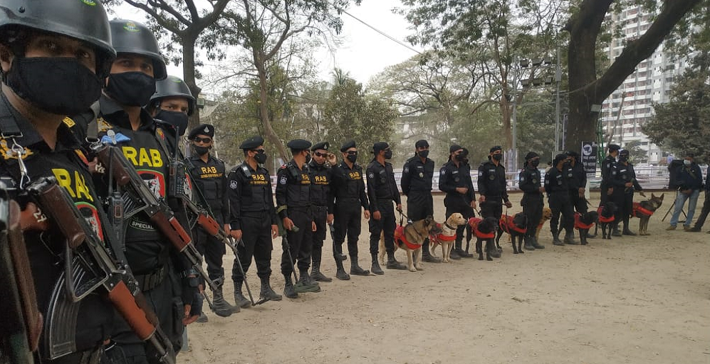 র্যাবের বোম্ব ডিসপোজাল ইউনিট, স্ট্রাইকিং ফোর্স স্ট্যান্ডবাই থাকবে উল্লেখ করে তিনি বলেন, র্যাবের কন্ট্রোলরুম থেকে সিসিটিভি ক্যামেরার মাধ্যমে সার্বক্ষণিক মনিটরিং করা হচ্ছে। যেকোনো স্থানে মুভমেন্টের জন্য র্যাবের হেলিকপ্টার প্রস্তুত আছে।